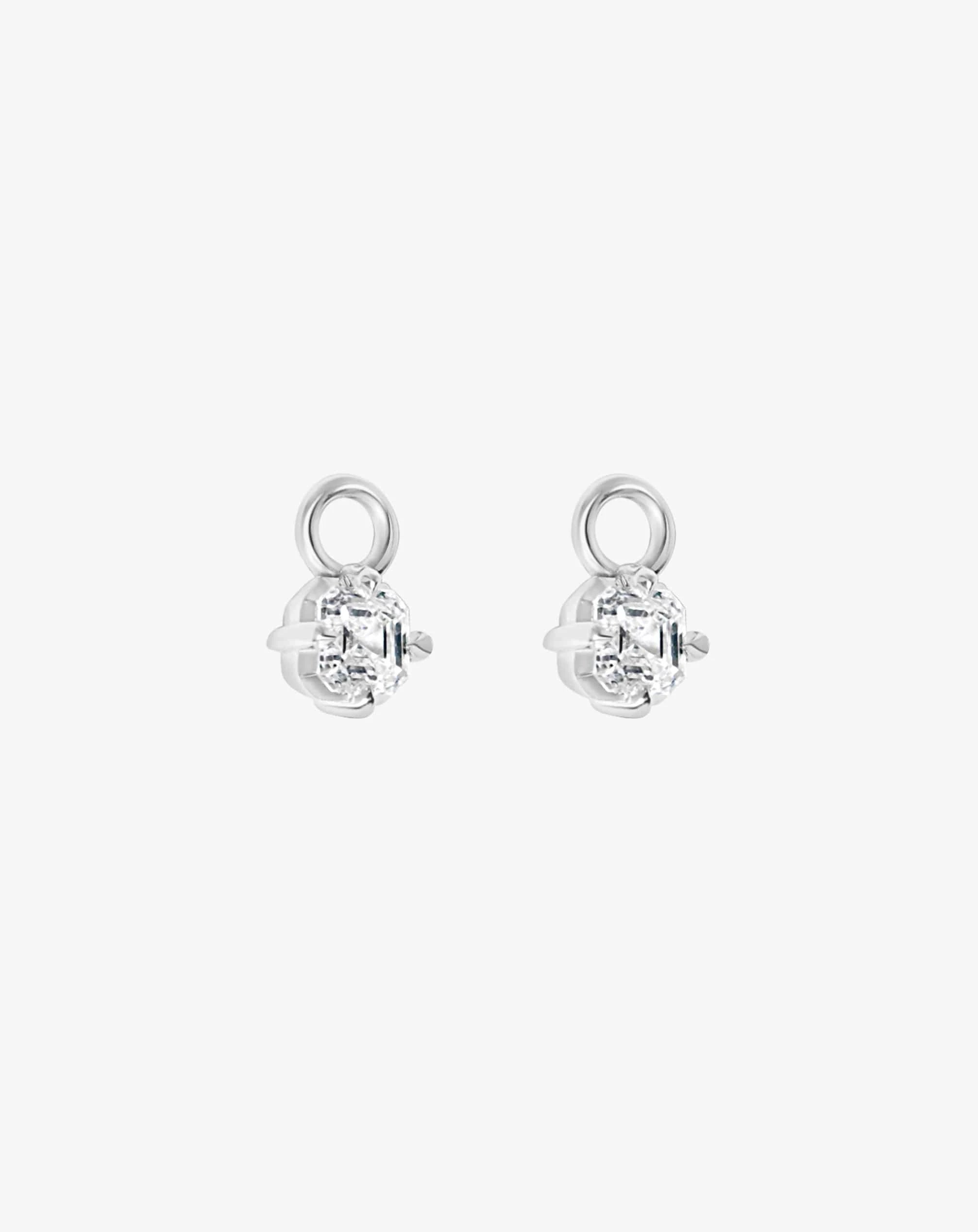 Boussole Huggie Charm in White Gold - Asscher Diamond
