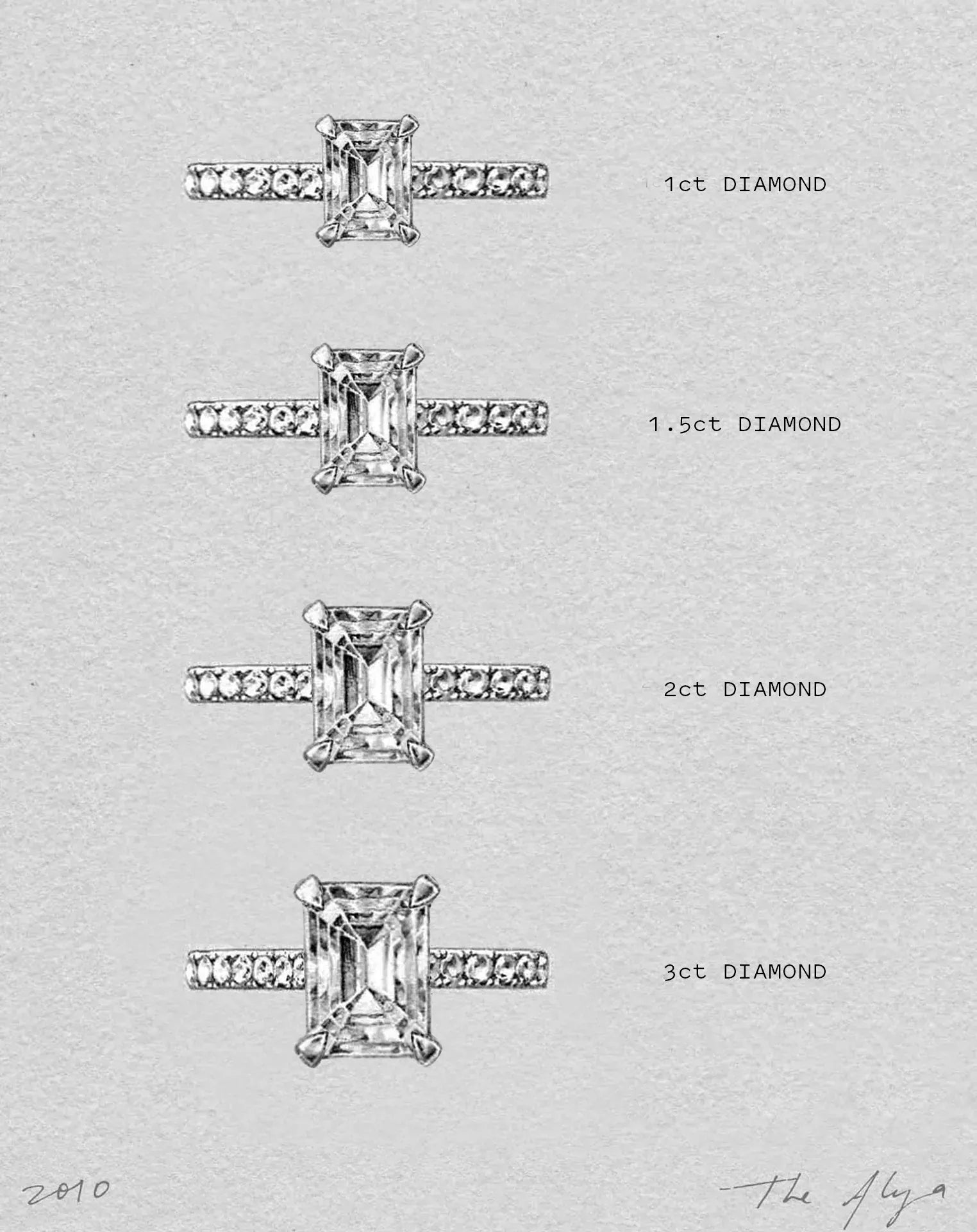 The Apollo - Emerald Setting is a new favourite, defined by its classic, sculptural form and refined detailing. An emerald-cut diamond is held by four pear-shaped claws in a tapered basket, while a diamond-set band sweeps softly toward the centre, allowing light to pass through each scallop-set stone for exceptional brilliance. Timeless and beautifully luminous.