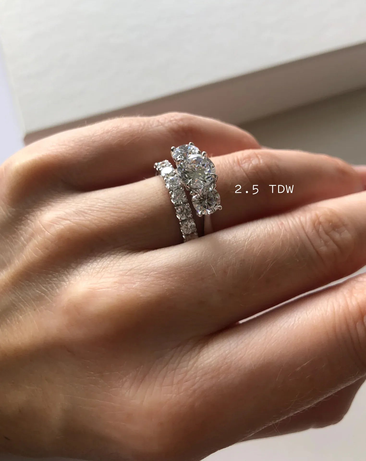 2.5 TDW: 1.5ct centre with 0.5ct each side
