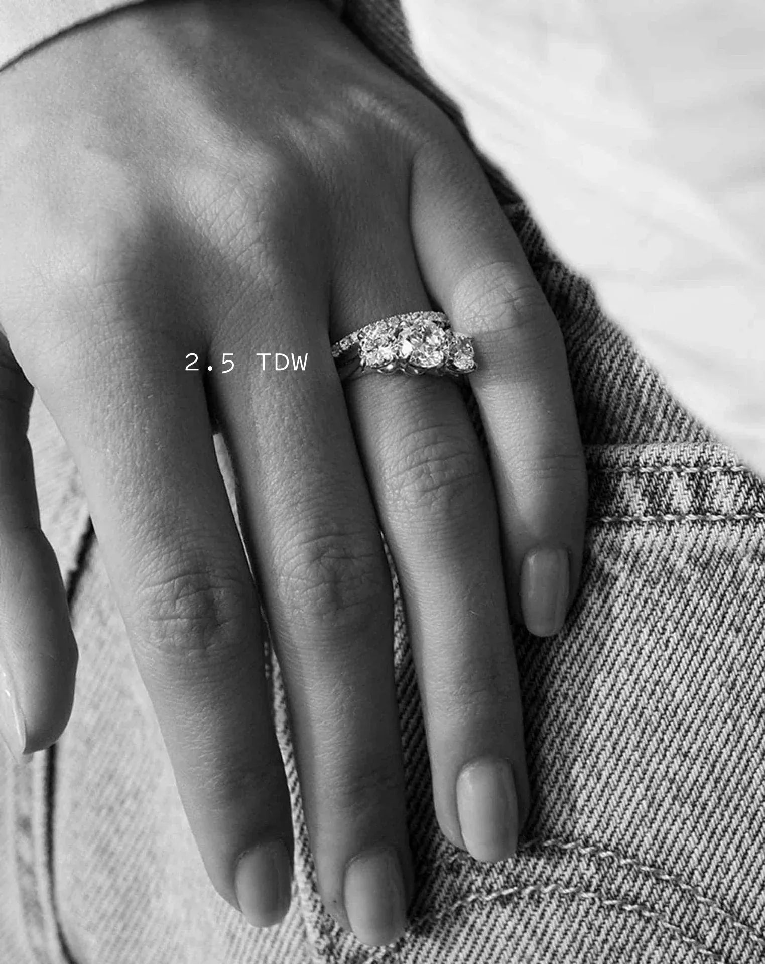 Total Diamond Weight (TDW) includes the centre diamond and side stones: